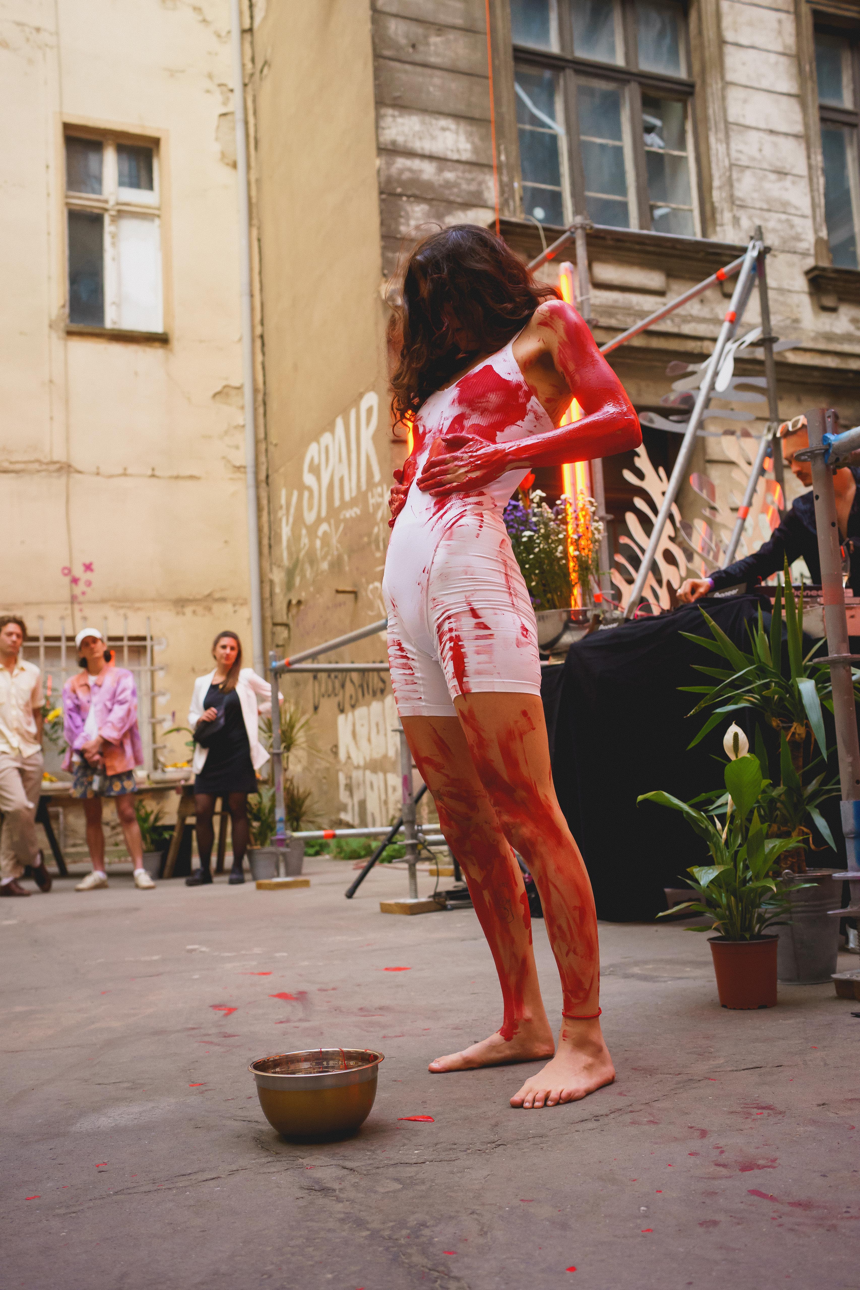 When I perform at my own exhibitions, the performance becomes an extension of the artworks themselves. Through movement, I underline and embody the themes I explore visually, allowing the audience to experience the ideas not only through the paintings but also through the living presence of the body.